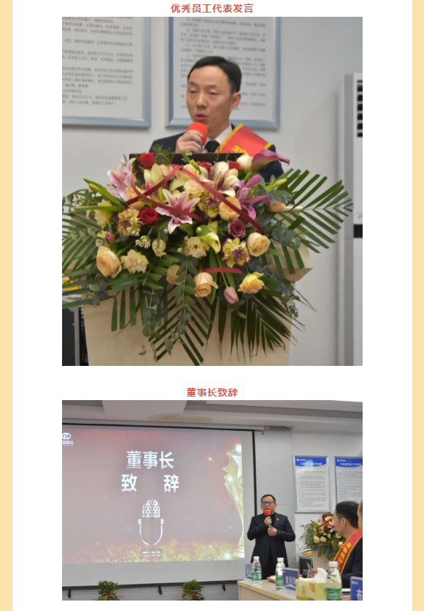 年會(huì)開始,董事長(zhǎng)上臺(tái)致辭,共同回顧過去一年的辛勤與收獲,展望未來的機(jī)遇與挑戰(zhàn)。過去一年,全體員工團(tuán)結(jié)協(xié)作,攻堅(jiān)克難,取得了令人矚目的成績(jī)。董事長(zhǎng)代表公司管理層,向每一位辛勤付出的員工表示衷心的感謝和崇高的敬意。希望未來,繼續(xù)發(fā)揚(yáng)拼搏精神,共創(chuàng)更加輝煌的明天。最后,對(duì)全體員工表達(dá)了真摯的新年祝福。